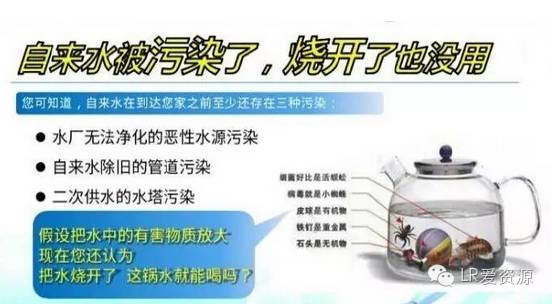说到现在有的朋友会说:“哇,听你这么一介绍,这水还真的不能随便喝,那行,我把它烧开了喝”,也有的朋友会说:“咱们家早就不喝自来水了,喝桶装水”,也有人认为喝纯净水缺少了矿物质对身体不利等等,其实这些观念只是出于一些人为的误导和对水的知识的缺乏,下面我再和大家讲一讲水的误区。