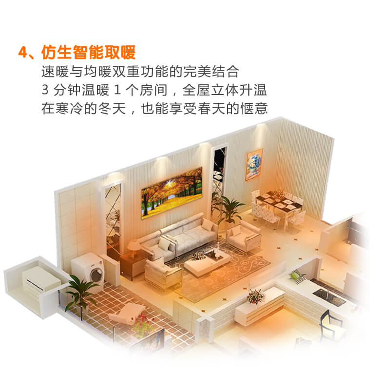 3.调节室内温度,有家有阳光(远红外技术仿太阳辐射温暖,寒冷的时候给家暖暖的感觉。)
