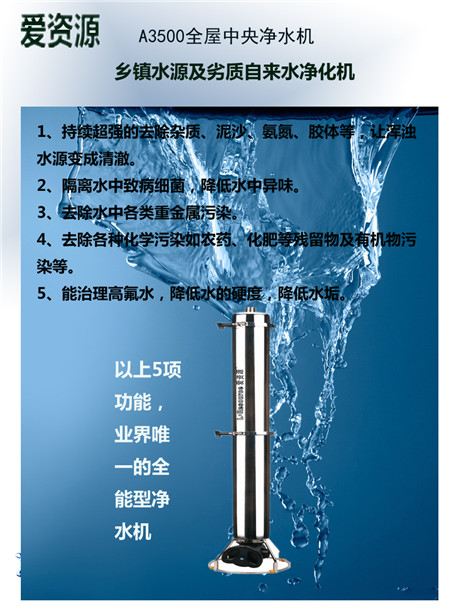 一款全能型持续超强各种劣质水源及非自来水源严重污染的中央净水机。